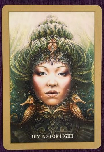 How brave you are! You are diving for light. It can be so much simpler to seek light in the heavenly, in that which is blissful, sweet, loving and kind. to look for the light in that which is dark is an advanced task that only a rebellious and brave heart will attempt. You may not feel that you have taken such a journey by choice. Yet you have taken this wise challenge on from deep within your soul. Your innermost being has evoked this situation in your life with the intention that you grow in power, wisdom, and creative juice. it also wants you to experience a bold and fearless trust in life and become further empowered to live it with zest and courage. it speaks of a time when you are called into darkness through life circumstances, situations, relationship challenges or inner struggles that defy clear understanding. that darkness might be a creative block, a sense of being in a void or feelings of depression, rage, sadness, fear or anxiety. There may or may not be an obvious cause. The darkness might be generally accepted and socially acknowledged because there is a socially acceptable or obvious reason for it – such as a death, divorce or retrenchment. However, there may be no obvious justification for your experience of darkness. You might not need a ‘reason’ to be able to accept it, likewise you may struggle to find an unconditional acceptance of your experience. Just know that you are actually on track and right where you need to be. Our creative process and our spiritual path go through a similar ‘turning of the wheel’ progress. There is a spring and summer, in the seasons of our soul, as well as in the earthly ones. There is the autumn harvest and there is the death inherent in winter, when energy is concentrated and pulled within to seek out the darkness where it can rest, regenerate and simply be, until the time is right for new life, energy and creative inspiration to burst forth. When diving for light,  one must be willing to bear the darkness and understand it has a purpose, much like winter does upon the earth. It is in error or through lack of consciousness that you are here now. It is testament to your spiritual growth and creative process, not a sign that they are lacking or stalling. The healing process below will help you with your inward plunging and to successfully navigate it. This Oracle brings particular guidance that although you are powerful, you are also vulnerable at this time. You need to be alert to sabotage and criticism that may make your progress more difficult than it already is. That would be rather unnecessary. At least some of the people around you might be more attached to their fear and doubt than to their faith in your process and the ways of the creative, rebellious, spiritual path that asks us to trust unconditionally. They may be frightened due to lack of understanding. You don’t need to carry their fear for them.You have your own process to attend to and they can choose to be inspired by your journey, or frightened by it. They are free to respond as they wish and whatever those responses are, they are part of their journey, for them to work through. You also need to be vigilant against the darker forces within you. These are the voices that you may not expect, particularly if you are a pure-hearted being who typically resonates with love. These voices or feelings might surprise you with their dark intensity. They may be feelings of hate, terror, or of wanting only to sleep because anything further is all just too hard. They mat contain vicious criticism of yourself or tell you that your inner creative work is pointless, unoriginal, not worth it or stupid. These dark forces might try to tell you that you are on the wrong path, suggest that you will fail, or ask with great condescension, “Who the hell do you think you are!” You must stay in your heart and not believe these dark forces. Stay in compassion. Fear creates the energy of anger, hate and destructiveness. These forces are a part of life. We don’t have to be frightened of them, nor do we need to deny their existence or try to ignore them in order to find light in the darkness. We just need to hold compassion and be intelligently aware so we can avoid being seduced into the trap of needing to prove ourselves or into the mistaken belief that we need to fight against darkness. It is too easy to get caught up in trying to heal the dark. Darkness just is. Recognize it when it is there and be in your compassionate heart. All you need to do is to make a choice – will you stay in your heart or will you be seduced by darkness and overcome by hate or sleepiness? Diving for light is a spiritual test and a threshold for all true creative work. We successfully navigate our way through this test and pass the threshold into new creative birth, by staying connected to the light of compassion in our own hearts. It is not an easy test, but it is one you must be ready for – otherwise it wouldn’t be coming to you now. Just remember, it is the light of the heart that sustains. It exists within us always, even in the darkest depths of unknown terrain.                                        This oracle also comes with a special message. There is a darkness within or around you that could become problematic if left unchecked. If, for no particular reason, you find yourself feeling angry, irritated, hopeless or tired more easily than usual, unable to rest or it is just too much effort to exercise or take care f yourself, then this darkness is having an unnecessary effect on you. It is time to end that now from a place of compassion. The healing process below will empower you for that task. Don’t be afraid. You are learning this lesson and the unending power of compassion because you are ready for it. Feel honored by the lesson and stay humbly centered in your powerful, rebellious heart that refuses to be conquered by fear and remains faithful to l