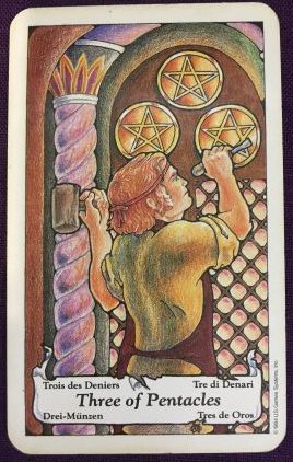 This week we have drawn the Three of Pentacles. The keyword meanings for this card are: Great skill in your work or trade. Mastery. Perfection. Artistic ability. Dignity. Renown. Rank. Power. Overall this card speaks of doing your very best work, and people are starting to take notice of your skill. This is the card of the Apprentice that has had his final evaluation and has passed with flying colors and has been promoted to a Journeyman position at work. His work has been admired by his peers and higher ups, and his efforts and skill have paid off. It’s very possible that by doing your best work, people are complimenting you and it’s even possible that you could be rewarded for the good job you have been doing. This could be a pat on the back, an actual award or ceremony in your honor. You could be recognized as Employee of the Month. Or you could get a raise, promotion, or be given a reference to other prospective Clients or Employers. Your skill is recognized by the higher ups and they will recommend you to others because of your skill and high work ethics . You may be climbing the ladder at work or professionally through your own efforts. This recognition will fill you with purpose, power and give you a sense of dignity. People know your name because your skill and work have earned you a good reputation in the business or work force. If this hasn’t happened for you just yet, it’s only a matter of time before it does. Keep putting your best efforts into your work and it will reap it’s own rewards! If you have been struggling to learn a new skill or task, this is a heads up that you have or will soon master it. You may not even know people are taking notice of your work and efforts, but they are and will soon make it known and reward you for it. Keep up the good work and you will be recognized and rewarded! Congrats!!!