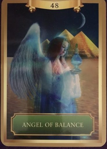 This loving presence holds a pitcher of liquid in front of the pyramids, reminding you that a strong destiny relies on a solid foundation of personal balance and emotional equanimity. Although things may have been out of sync in the past, this card is telling you that a greater equilibrium is now coming to your life. Remain conscious about how you are balancing your goals and your physical and emotional energy as well. Whenever you feel yourself getting off center or losing focus, call upon this beautiful angel and bring her intention into your heart center. Your intuition will lead you in the right direction, and the angel will guide you to a peaceful and centered approach.