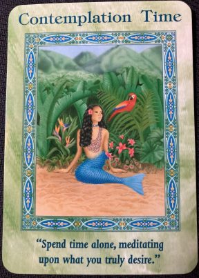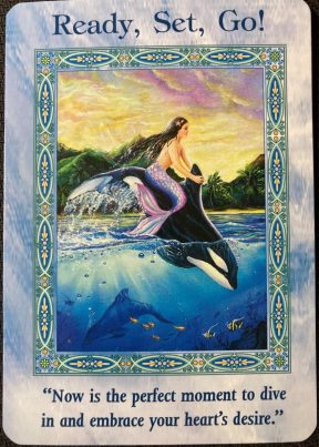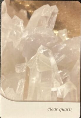 This card is asking you to reflect on all that you would love to have and to achieve in life. Make a list, and then mentally infuse this card (or alternatively, a real Clear Quartz crystal) with all the qualities and things you wish to manifest. Carry this card or crystal with you – keep it close to your heart and mentally envisage your life as you would love it to be. Set realistic goals for yourself and repeat this ritual daily until your goals are reached, then set new goals. Remember – all is possible if you believe it. Just make sure it is truly what your heart desires.