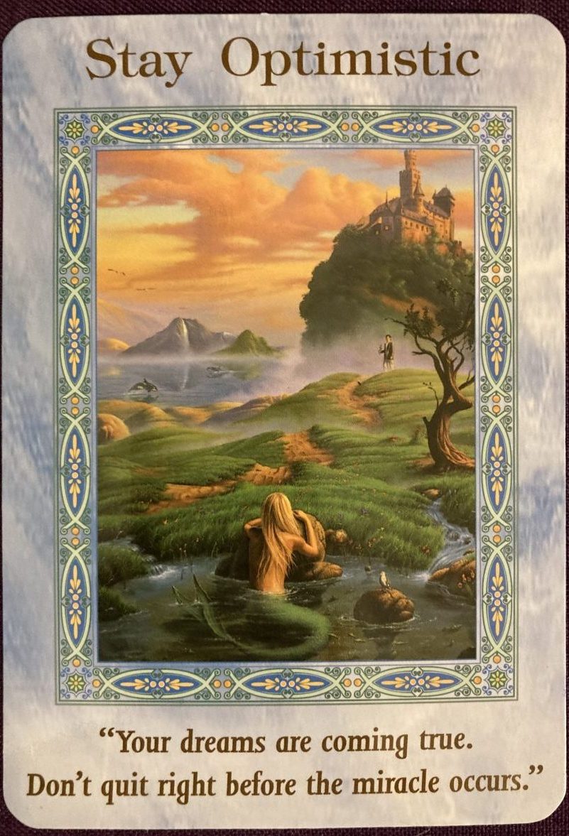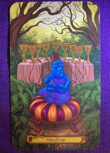 The Nine of Cups is a fabulous card to choose. It is known as ‘the wish card’. Who wouldn’t want to have a wish fulfilled? Whether big or small, a wish you have been hoping for will soon come true. This also suggests to give thanks to those who have helped make this happen for you. Show your gratitude whether this is towards a person, just good luck, or even towards yourself for putting in the hard work necessary to make this happen. There is also a bit of a warning however, ‘be careful what you wish for because you just might get it!’ Be sure you’ve really thought about the outcome if you were to get your wish. If it’s a car or house you wish for, can you really afford the payments after the initial purchase? Is that special someone really the best thing for you or do they come with way to much baggage and will halt your future growth? All in all though, this is a beautiful card to have. Your wish is the Genies command… so enjoy your good fortune but don’t sit on your laurels. Also, this cards indicates we will be enjoying worldly pleasures such as good food, good wine, sensual encounters and the things money can buy. So there is an added warning to be moderate while partaking of these pleasures. We could end up over indulging and gaining weight, getting a hangover, getting involved with the wrong person, getting pregnant, or over spending. There’s still one more task ahead before completion.