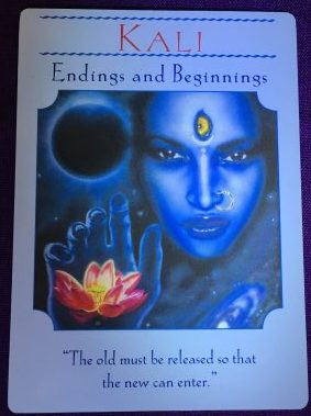 About Kali: (pronounced KAL~ee): This ultra-powerful Hindu goddess is feared by those who don’t understand the natural cycles of birth, death, and rebirth. Kali is the embodiment of Mother Nature, who cleanses away the old with natural storms and fires to make the ground fertile for new crops and life. Kali is the ultimate get-things-done goddess, and she’s a powerful ally to those who call upon her. Like a wise stage mother, she’ll push you beyond your comfort zone to reach the heights of your potential.